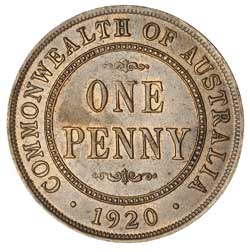GEORGE V, 1920 plain, London die. Good fine and rare.