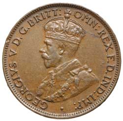 GEORGE V, 1923. Diagnostic peripheral die breaks either side, even brown patina, nearly extremely fine ...