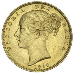 QUEEN VICTORIA, young head, sovereign, shield reverse, 1851 (S.3852C). Good fine.