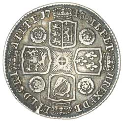 GEORGE II, crown, 1735, roses and plumes, young head, edge dated octavo (S.3686). Toned, slight ...
