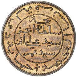 COMOROS, bronze five centimes, AH1308A (1890-1) (KM.1.1). Red and brown, uncirculated and scarce.