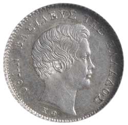 GREECE, Otto, quarter drachma, 1833 (KM.18). Lightly toned, good extremely fine/nearly uncirculated, and rare in this condition.