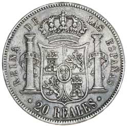 SPAIN, Isabel II, twenty reales, 1857 (KM.609.1). Some scuff marks in obverse field and on ...