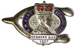 WORLD, Australia, Edward VIII, Visit to Australia, 1920, in silvered (20x22mm) (G.CM46.2), Prince of Wales plumes pin back; another similar in silvered (20x22mm) (not in Giordano), stick pin with ribbon; another similar but a circular badge in silvered (24mm) (not in Giordano), stick pin features Prince of Wales plumes with date at sides left and right, 'MAY/1920'; Great Britain, Proposed Coronation, 1937, in silvered and enamel (23mm) (G.CM267b) (2), with suspension loop and one with ribbon and pin brooch suspender, obverse, crown and robed bust of Edward VIII right, reverse, 5-line inscription; another identical but voided background, in silvered and enamel (23mm) (G.CM268), pin-back; another in silvered and enamel (19x24.5mm) (identical to main design of G.CM311 and 311.1), with lapel lug on reverse; another in silvered and enamel (26x35mm) (G.CM312), pin back, obverse, bareheaded head right bordered by coronation regalia, with crown above, and at left and right flags and Royal supporters, scroll below; another in silvered and enamel (33x20mm) (not in Giordano), obverse, on an oval background is a crowned and robed bust of Edward VIII right, at left and right, 'ER/VIII', below, 'CROWNED MAY/1937', in the oval border at left and right, 'H.M.KING/EDWARD VIII', this whole design resting on a horizontal wish-bone with pin back. Fine - nearly uncirculated. (9)