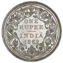 QUEEN VICTORIA, 1862 silver rupees with the following varieties bust A, reverse II, dots 0/4 ...