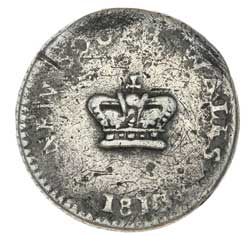 NEW SOUTH WALES, fifteen pence or dump, 1813 (Mira dies A/1). Flan clamped at top ...