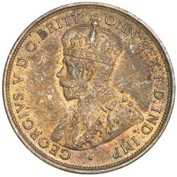 GEORGE V, 1912H. Dusty brown and red, nearly uncirculated.