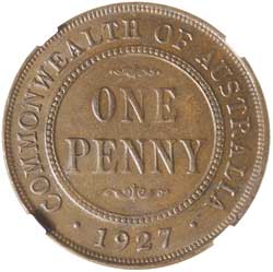 GEORGE V, 1927 London die. Brown and red, nearly uncirculated.