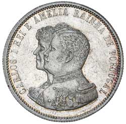 PORTUGAL, Carlos I, one thousand reis, 1898 (KM.539). Mirror-like fields, good extremely fine.