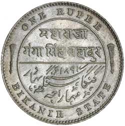 WORLD COINS, Hong Kong, Queen Victoria, five cents, 1899 (KM.5); India, Bikanir State, Queen Victoria, rupee, 1892 (KM.72); Japan, Taisho, fifty sen, year 5 (1916) (KM.Y37.2); Meiji, ten sen, year 39 (1906) (KM.Y23); Germany, Prussia, Wilhelm II, three mark, 1914A (KM.538); Belgium, two hundred and fifty francs, 1976 (KM.158.1). Extremely fine - uncirculated. (6)