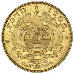 SOUTH AFRICA, ZAR, Paul Kruger, one pond, 1900 (KM.10.2). Nearly extremely fine.
