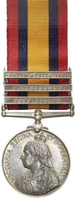 PAIR: India General Service Medal 1849-95, - clasp - Hazara 1891; Queen's South Africa Medal 1899 (second reverse with ghost dates), - three clasps - Cape Colony, Wittebergen, South Africa 1901. 1634 Pte A.Binnie. 2nd Bn Sea. Highrs on first medal, 1634 Ote A.Binnie, 2: Sea: Highrs: on second medal. First medal engraved in script style, second medal impressed. Superbly toned, virtually uncirculated.