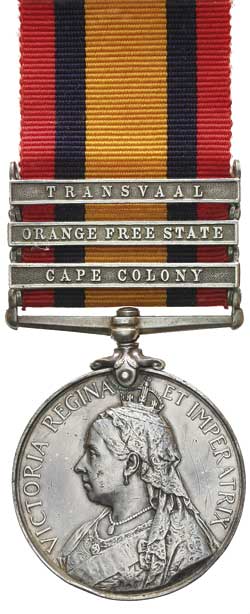 PAIR: Queen's South Africa Medal 1899 (type 2 reverse with clear ghost dates), - four ...