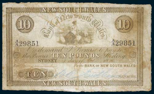 BANK OF NEW SOUTH WALES, ten pounds, Sydney, 1 October 1880 A/A 29851 (MVR 7c). ...