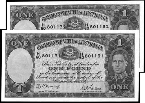 ONE POUND, Coombs/Watt (1949) 1/25 788082; W/18 677582 and Coombs/Wilson (1952) W/83 983753 (R.31(2), 32). ...