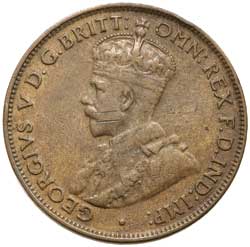 GEORGE V, 1923. Diagnostic peripheral die breaks either side, old cut on cheek, otherwise good fine.