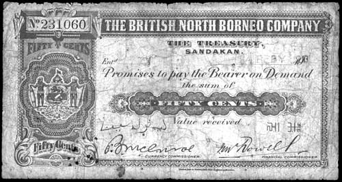 BRITISH NORTH BORNEO, fifty cents, 1st January 1938 (P. 27) one dollar, 1st July, 1940 ...