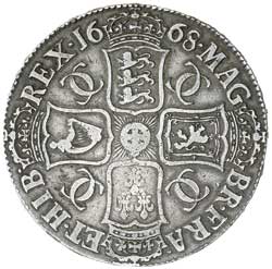 CHARLES II, crown, second bust, 1668 (S.3357). Good fine.