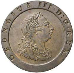 GEORGE III, cartwheel twopence, 1797 (S.3776). Nearly very fine.