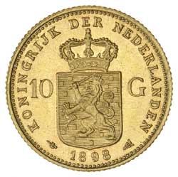 NETHERLANDS, Wilhelmina, ten gulden, 1898 (KM.124). Choice uncirculated.
