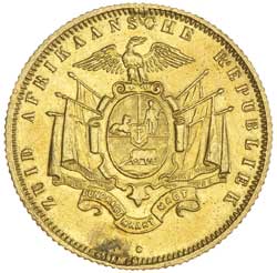 SOUTH AFRICA, ZAR, Thomas Francois Burgers, one pond, 1874, coarse beard (KM.1.1). Has been mounted, otherwise nearly very fine and very rare.