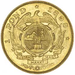 SOUTH AFRICA, ZAR, Paul Kruger, one pond, 1898 (KM.10.2). Nearly uncirculated.