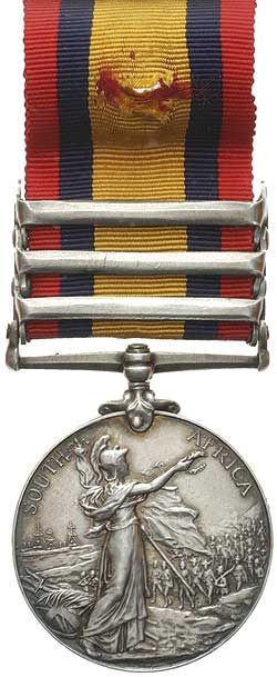 QUEEN'S SOUTH AFRICA MEDAL 1899 TO WIA, (type 3 reverse), - two clasps - Relief ...