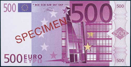 EUROPE, European Central Bank, five, ten, twenty, fifty, one hundred, two hundred and five hundred ...