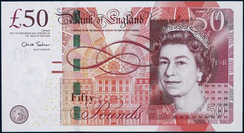 GREAT BRITAIN, Bank of England, five pounds, (1991-98), AK76 345041, CJ22 020288 (P.382b) (2); ten pounds, (1993-98), JK06 793563 (P.386a); fifty pounds, (2011), AB59 121776 (P.393b). The third note with crease, and the last note with small production pinch crease at top edge of security thread, otherwise uncirculated. (4)