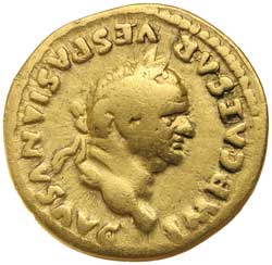 VESPASIAN, (AD 69-79), gold aureus, Rome mint, issued A.D. 70, (7.29 g), obv. laureate head ...