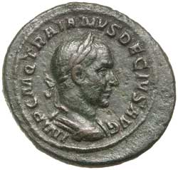 TRAJAN DECIUS (A.D. 249-251), AE semis, Rome mint, issued 250, (4.05 g), obv. Trajan Decius ...