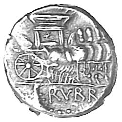 L.RUBRIUS Dossenus, (87 B.C.), silver denarius, Rome mint, (3.824 grams), obv. helmeted bust of Mars ...