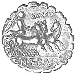 C. NAEVIUS BALBUS, (c.79 B.C.), silver denarius, Rome mint, (4.132 grams), obv. Venus diademed head right, S.C. behind, rev. Victory in triga, XXXXIII above, C. NAE BALB in exergue, (S.309, Cr.382/1b, Syd. 769b, B.Naevia 6). Banker's mark on obverse, serrated edge, good very fine or better, scarce.