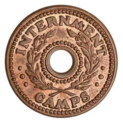 COMMONWEALTH OF AUSTRALIA, World War II, Internment Camps, threepence. Red uncirculated.
