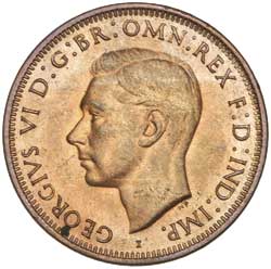 GEORGE VI, 1942I. Finger mark on obverse, otherwise red uncirculated.