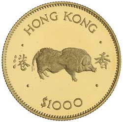 HONG KONG, Elizabeth II, proof one thousand dollars, 1983 (Pig) (KM.51) (AGW 0.4708oz/coin). Without cases ...