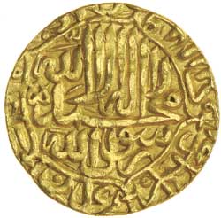 INDIA, Mogul Emperor, Akbar, (A.H. 963-1014, A.D. 1556-1605), gold mohur, (10.94 g), Agra mint, year 974 (1566-1567), Agra mint signature mostly off flan, obv. Kalina, rev. Akbar's name, date and mint signature, (cf.BMC 24 [Agra?], Lucknow 69 [Agra and illustrated], cf.Indian Museum Calcutta 102 [975 Uncertain mint], KM. SAC 105.1). Knock in reverse field, otherwise almost a full flan and nearly extremely fine and rare.