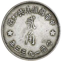 CHINA, Chinese Soviet Republic, silver twenty cents 1933, (5.25 g), (KM.508. Kann 807). Very fine, ...