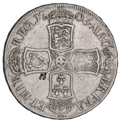 ANNE, before the Union, halfcrown, 1703 vigo (S.3580). Good fine.