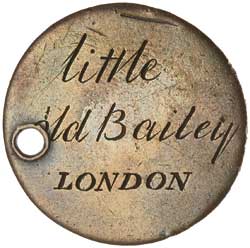 The Fountain Tavern was sited on the west side of Little Old Bailey and was demolished in 1793; the site is now under Holborn Viaduct Station. The tavern was nearby to Newgate Prison and most probably operated as a brothel. The above token is possibly an indentured servant's ID disc.