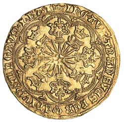 EDWARD IV, (1461-1470), gold ryal, London Mint, Annulet issue, small trefoils in spandrels, issued 1464/5-1470, initial none/crown, rose on ship's side and centre of reverse, (7.73 g), (S.1950, N.1549). Attractive perfectly round with a good portrait, extremely fine and rare in this condition.