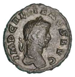 GALLIENUS, (A.D. 253-268), billon denarius, issued 265-271, (2.03 g), Rome mint, obv. laureate bust right, ...