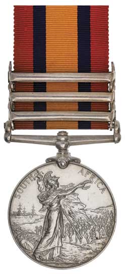 QUEEN'S SOUTH AFRICA MEDAL 1899, (type 2 reverse with clear ghost dates), - four clasps ...