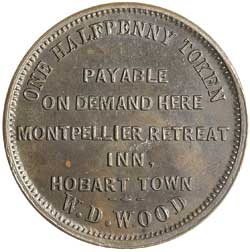 WOOD, W.D., Hobart Town halfpenny, undated (A.642). Dark red grey brown specimen-like uncirculated.