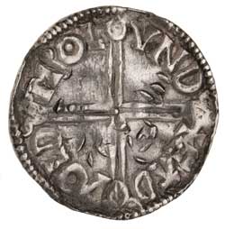 AETHELRED II, long cross penny, (BMC IVa) Eadwald mo Lund (Eadwald of London)(S.1151)(1.67g). Peckmarked, crinkled, otherwise good fine.