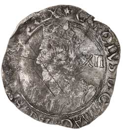 CHARLES I, (1625-1649), Tower Mint, type 4-4 coinage, fourth bust, silver shilling, from the Thames ...