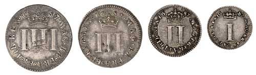JAMES II, Maundy set, 1687 (S.3418), fourpence is 1687/6, Very fine - nearly extremely fine. ...