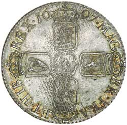 WILLIAM III, shilling, third bust variety, 1697 (S.3511). Adjustment mark both sides, otherwise as struck, uncirculated.