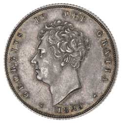 GEORGE IV, shilling, crowned shield in Garter, 1825 (S.3811). Reverse evenly toned, nearly uncirculated.