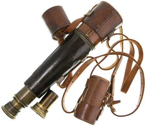 OFFICER'S TELESCOPE, 19th century brass, extendable type, with elaborate leather case, with added eyepiece in ...